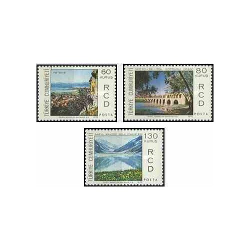 • 3 عدد تمبر ششمین سالگرد همکاری عمران منطقه ای - RCD - ایران ، پاکستان و ترکیه - ترکیه 1970
