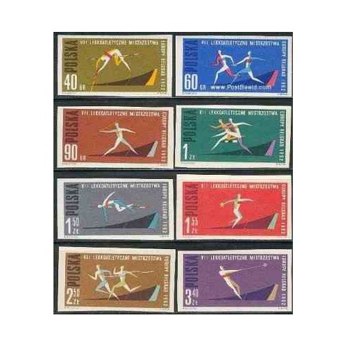 8 عدد تمبر مسابقات اروپائی ورزشهای سبک در بلگراد یوگوسلاوی - بیدندانه -  لهستان 1962