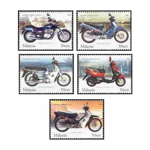 5 عدد تمبر موتورسیکلتها و اسکوترهای ساخت مالزی- مالزی 2003