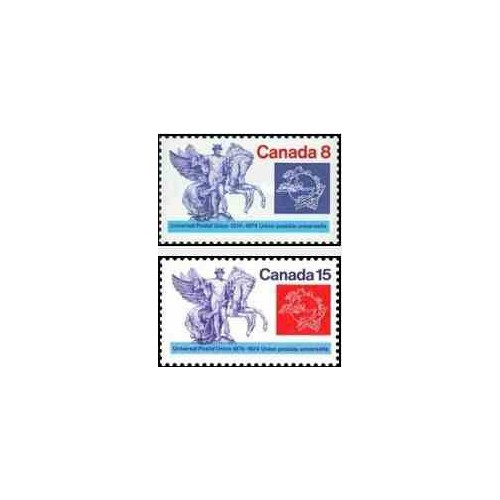 • 2 عدد تمبر صدمین سال اتحادیه جهانی پست - UPU - کانادا 1974