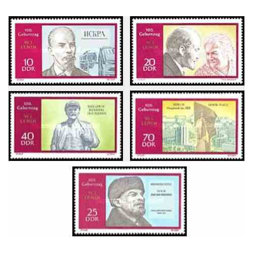 5 عدد تمبر صدمین سال تولد لنین - جمهوری دموکراتیک آلمان 1970