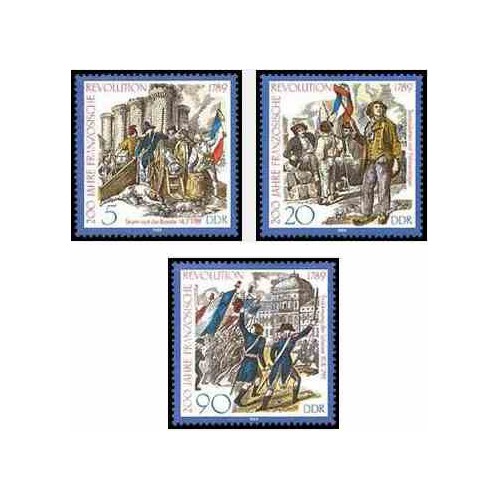 3 عدد تمبر 200مین سالگرد انقلاب فرانسه  - جمهوری دموکراتیک آلمان 1989