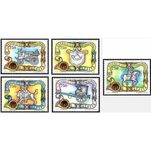5 عدد تمبر تاریخچه پستی کالسکه ها و تاکسی ها - ایتالیا 1993