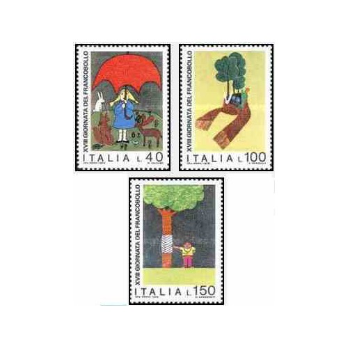 • 3 عدد تمبر روز تمبر - نقاشی کودک - ایتالیا 1976