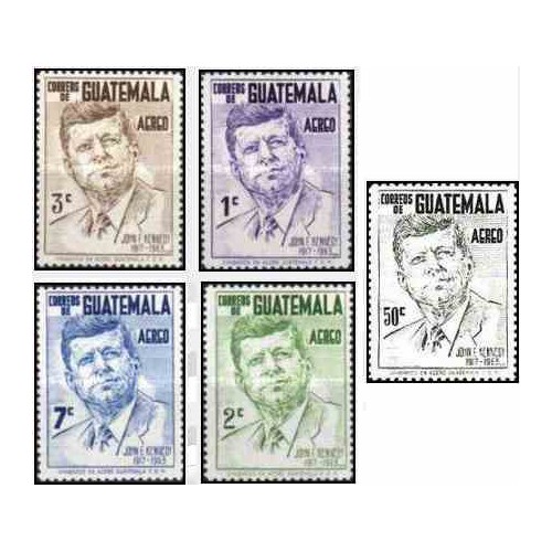 5 عدد تمبر پست هوایی - بزرگداشت کندی رئیس جمهور آمریکا - 1963- 1917- گواتمالا 1964
