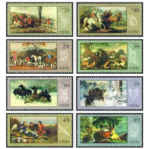 8 عدد تمبر نقاشی شکارچیان - تابلو نقاشی - لهستان 1968 قیمت 5.5 دلار
