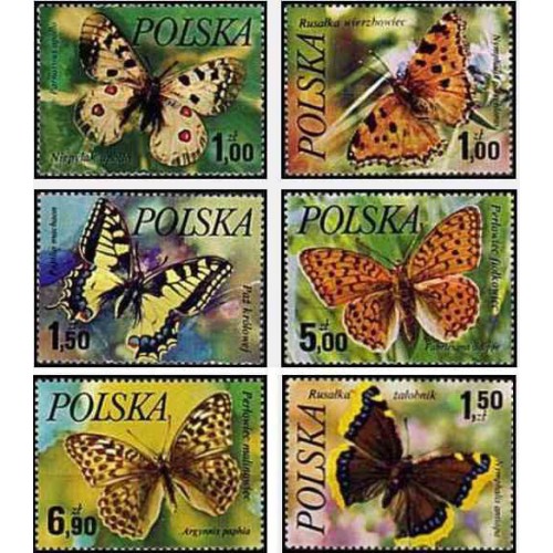 6 عدد تمبر پروانه ها - لهستان 1977