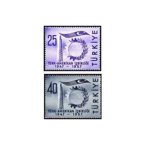2 عدد تمبر دوستی ترکیه و آمریکا - ترکیه 1957