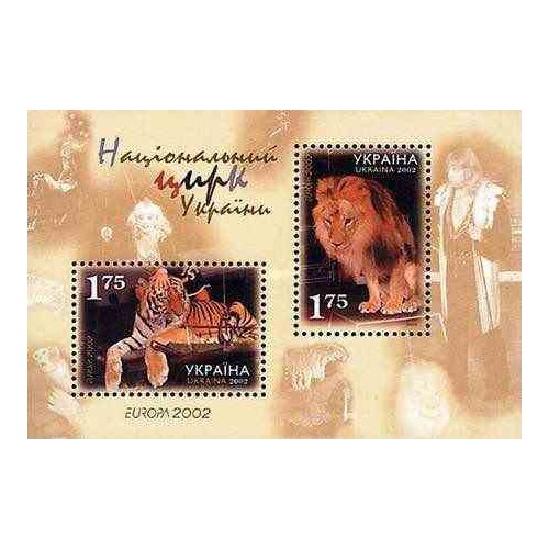 • سونیرشیت تمبر مشترک اروپا - Euro Cept -سیرک - شیر و ببر - اوکراین 2002