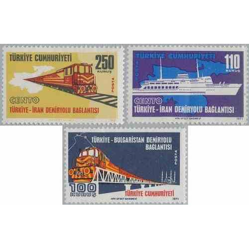 3 عدد تمبر اتصال راه آهن ایران و ترکیه  - ترکیه 1971