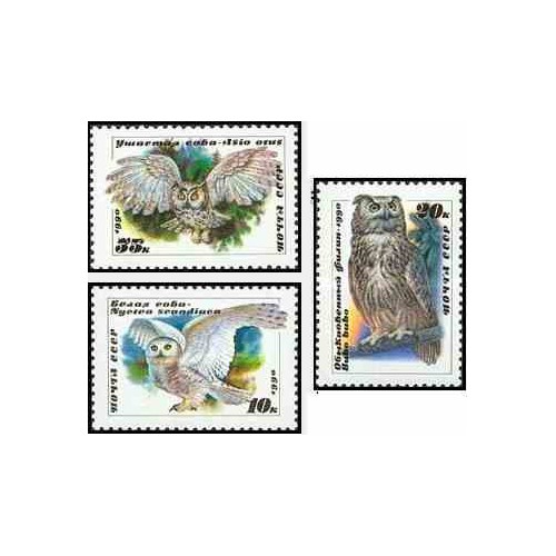 3 عدد تمبر جغدها - شوروی 1990
