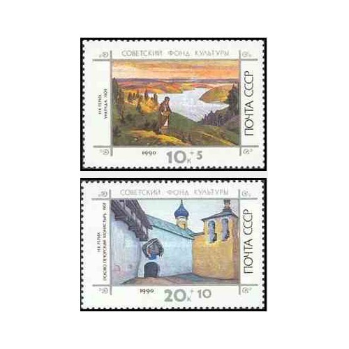 2 عدد تمبر تابلو نقاشی اثر رریخ - شوروی 1990