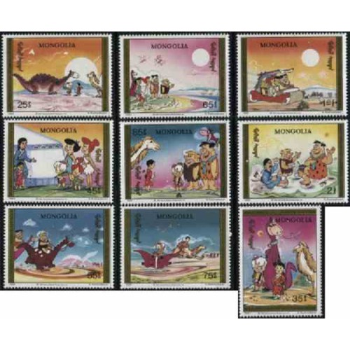 9 عدد تمبر کارتون عصر حجر - خانواده فلینستون - مغولستان 1991