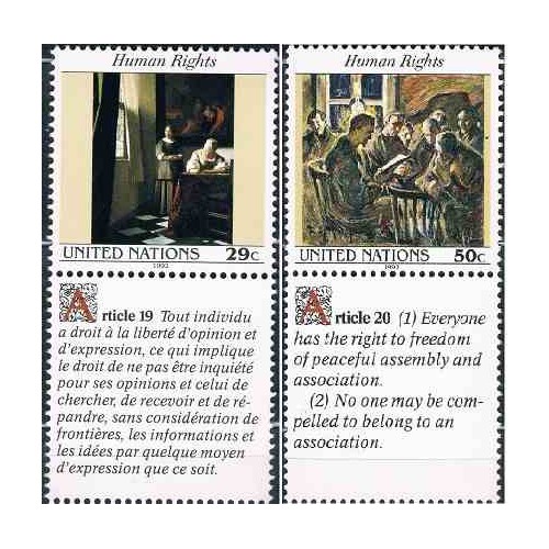2 عدد تمبر اعلامیه جهانی حقوق بشر  - نیویورک سازمان ملل 1992