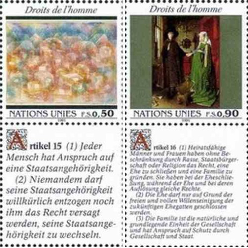 2 عدد تمبر اعلامیه  حقوق بشر  - ژنو سازمان ملل 1991