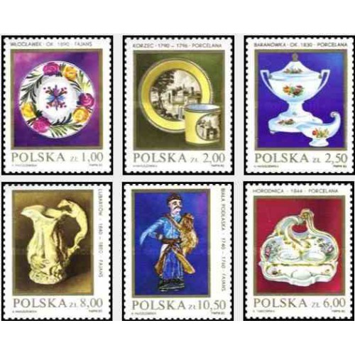 6 عدد تمبر چینی و سرامیکهای لهستانی - لهستان 1982