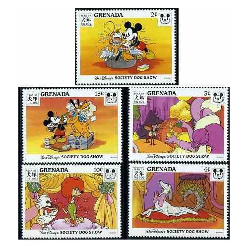 5 رقم از 9 عدد تمبر سال سگ - کاراکترهای دیسنی - گرانادا 1994