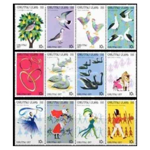 • 12 عدد تمبر کریستمس - 12 روز کریستمس - B-  جزیره کریستمس 1977 جدا شده از شیت