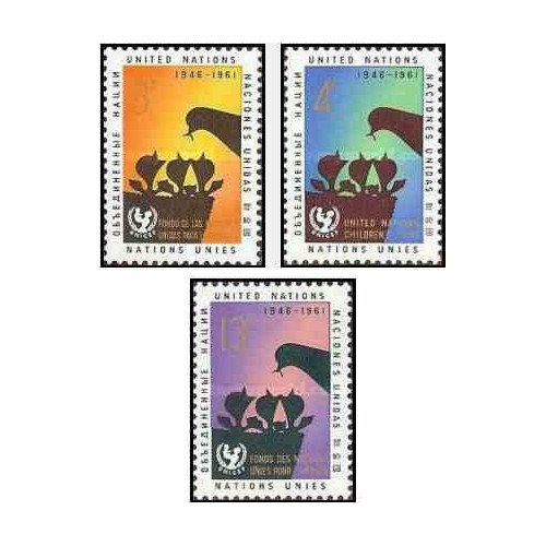 3 عدد تمبر 15مین سال یونیسف - نیویورک سازمان ملل 1961