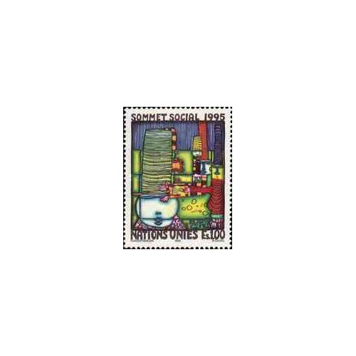 1 عدد تمبر اجلاس اجتماعی - نقاشی اثر هاندرواسر - ژنو سازمان ملل 1995