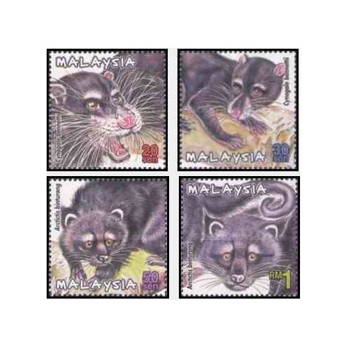 4 عدد تمبر پستانداران حفاظت شده مالزی - مالزی 2000
