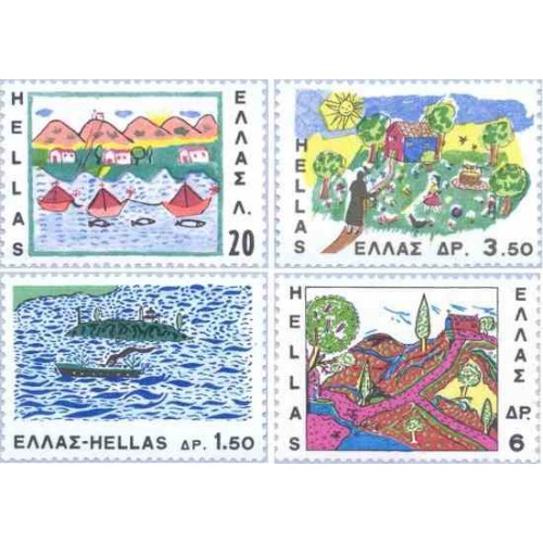 4 عدد تمبر نقاشی کودکان - یونان 1967