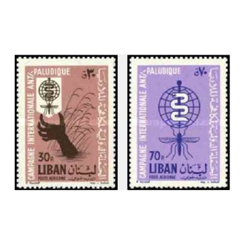 2 عدد تمبر ریشه کنی مالاریا - لبنان 1962