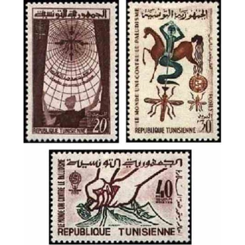 3 عدد تمبر ریشه کنی مالاریا  - تونس 1962