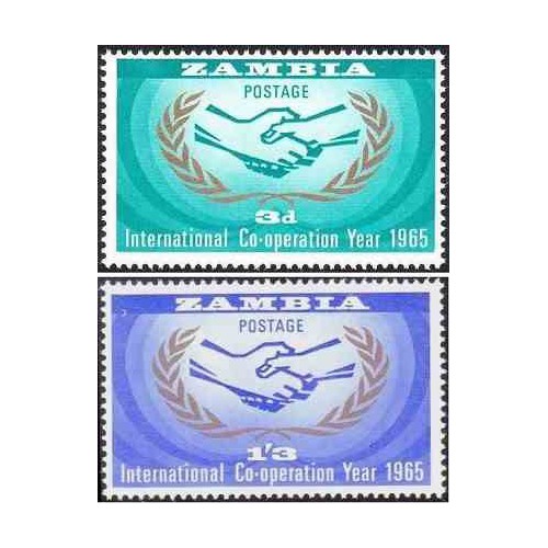 2 عدد تمبر سال همکاری بین المللی - زامبیا 1965