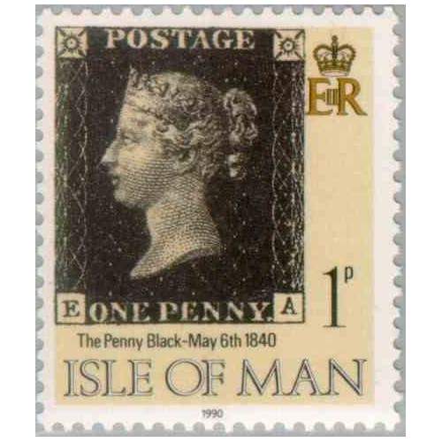 1 عدد تمبر 150مین سالگرد انتشار اولین تمبر پستی - پنی سیاه - جزیره من 1990
