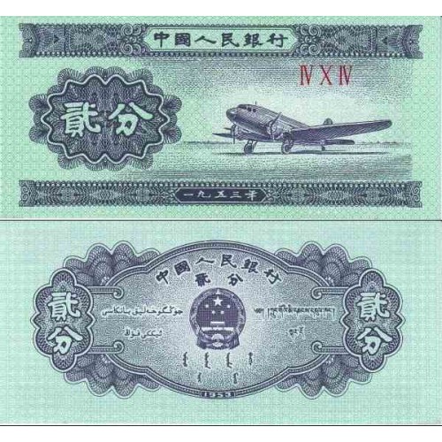 CHINA - Peoples Republic 1953 - 2 Fen - 2 Roman control numerals only