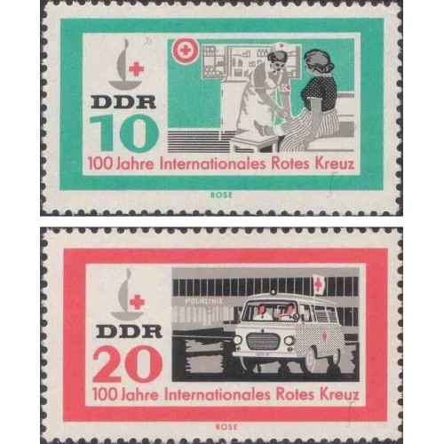 2 عدد تمبر صدمین سالگرد صلیب سرخ - جمهوری دموکراتیک آلمان 1963