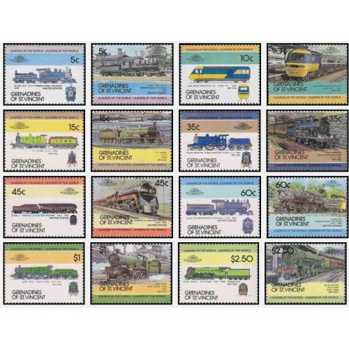 16 عدد تمبر رهبران جهان - لوکوموتیوها - گرندین سنت وینسنت 1984
