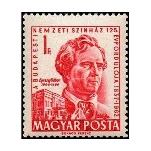 1 عدد تمبر صدمین سالگرد تئاتر ملی مجارستان - گابور اگرسی - مجارستان 1962