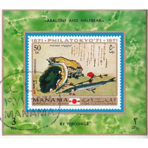 مینی شیت ماهیها- با مهر CTO - پست هوائی - منامه 1971