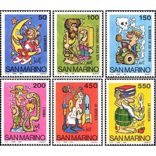 • 6 عدد تمبر مدرسه و طرحهای کارتونی فیلاتلی - اثر بنیتو جاکوویتی - سان مارینو 1984