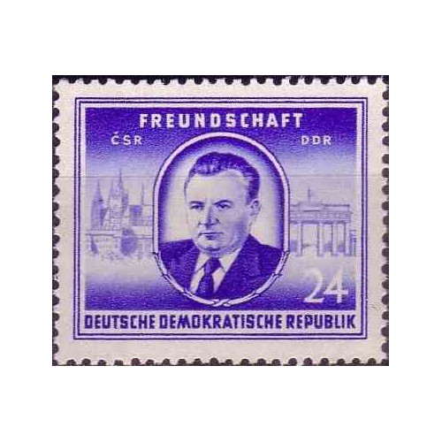 1 عدد تمبر نسخه دوستی آلمان چک اسلواکی  - کلمنت گوتوالد رییس جمهور چک - جمهوری دموکراتیک آلمان 1952 با شارنیه - قیمت 4.4 دلار