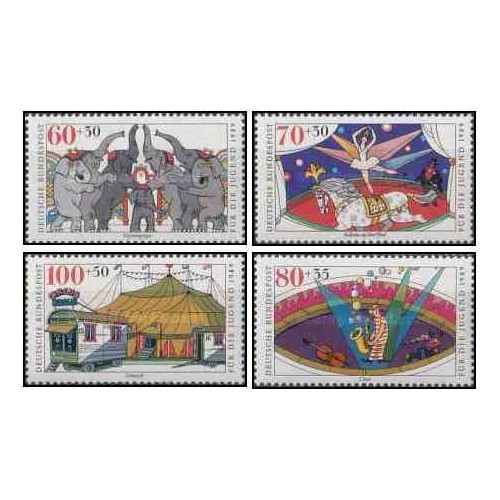 4 عدد تمبر خوابگاه جوانان - سیرک - جمهوری فدرال آلمان 1989 قیمت 13 دلار