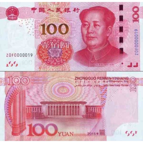 100 yuan banknote - series prefix letter number letter number - China 2015