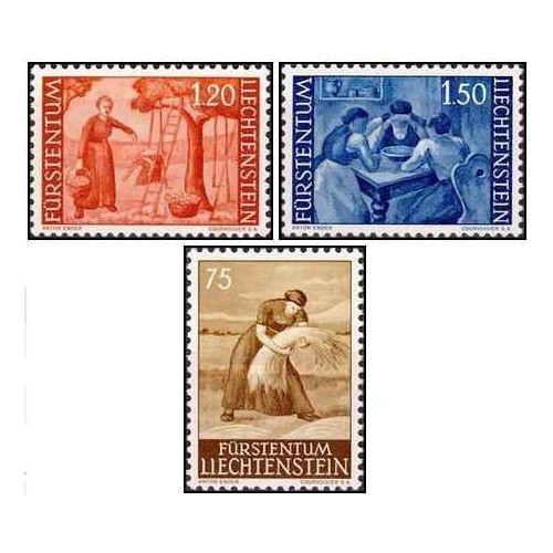 3 عدد تمبر انگیزه های روستائی - تابلو نقاشی - لیختنشتاین 1960 قیمت 5.3 دلار