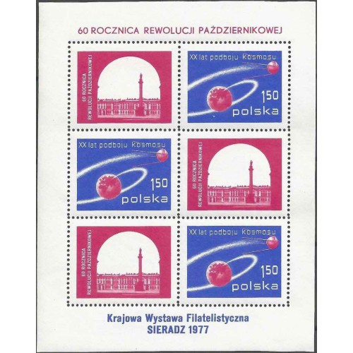 • مینی شیت نمایشگاه ملی فلسطینی در سیرادز به مناسبت شصتمین سالگرد انقلاب اکتبر و بیستمین سالگرد فتح فضا- لهستان 1977