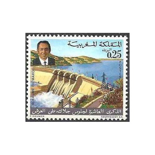 1 عدد تمبر دهمین سالگرد سلطنت ملک حسن - سد - مراکش 1971