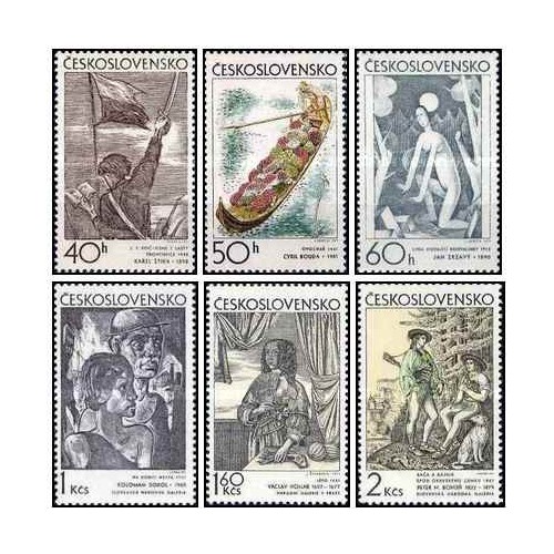 6 عدد  تمبر هنر گرافیک چک اسلواکی - تابلو نقاشی - چک اسلواکی 1971