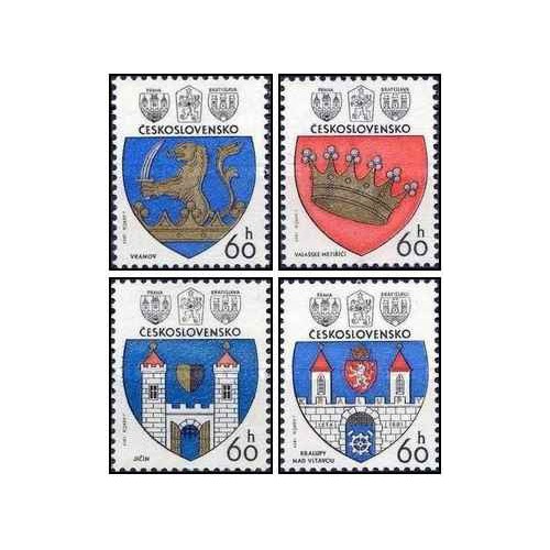 4 عدد تمبر نشان های شهرهای چک اسلواکی - چک اسلواکی 1977