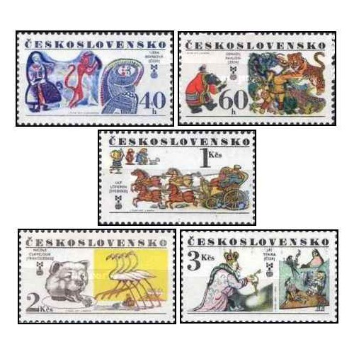 5 عدد تمبر ششمین نمایشگاه دوسالانه تصویرگران کتاب کودک، براتیسلاوا - چک اسلواکی 1977