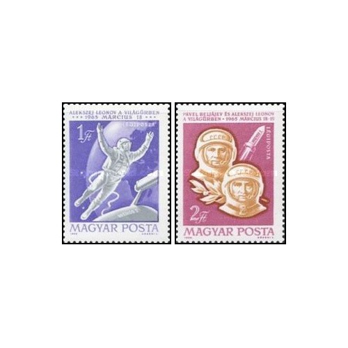 2 عدد تمبر پرواز سفینه فضایی وشود 2 - مجارستان 1965