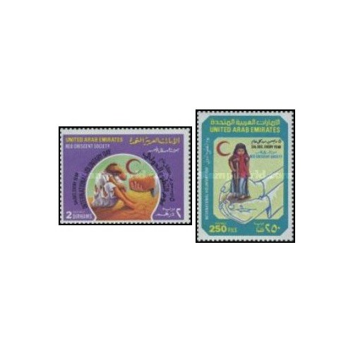• 2 عدد تمبر روز جهانی داوطلب - هلال احمر - امارات متحده عربی 1989