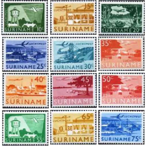 • 12 عدد  تمبر سری پستی هوائی - مناسبتهای محلی - سورینام 1965