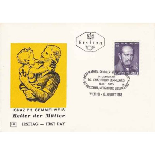 • پاکت مهر روز ، صدمین سالگرد درگذشت دکتر ایگناز فیلیپ سملوایس  - اتریش 1965