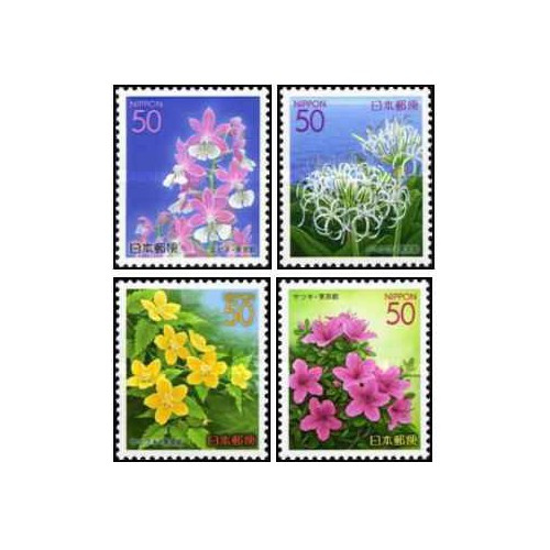 4 عدد تمبر استانی - توکیو - گلها - ژاپن 2005